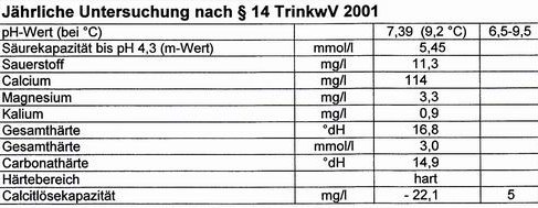Hier ein Auszug aus der aktuellen Wasseranalyse vom Trinkwasser in Fridingen vom 27.04.2011